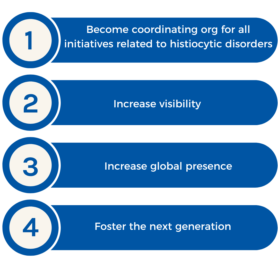 Purpose: For the Histiocyte Society to become the "go to" institution for everything pertaining to histiocytosis research and treatment that integrates disciplines, coordinates clinical and research efforts, and helps with communication surrounding all things related to histiocytosis.